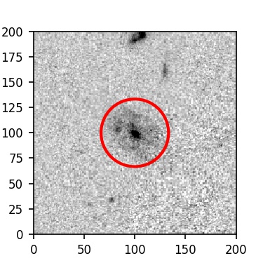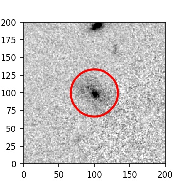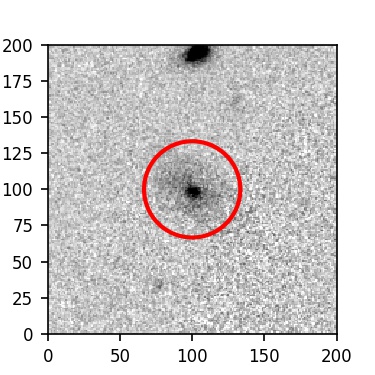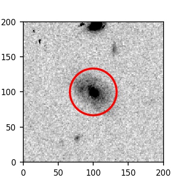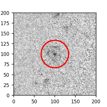 The red circle in the various panels is 1" in radius. The images are 6"x6".