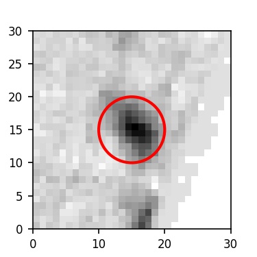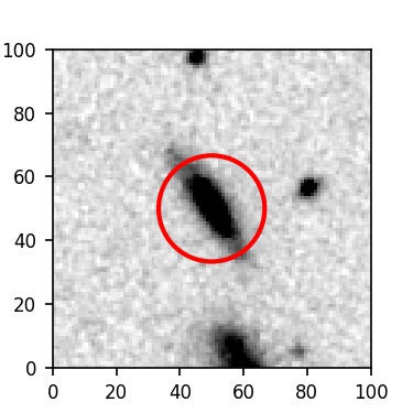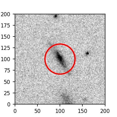The red circle in the various panels is 1" in radius. The images are 6"x6".