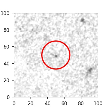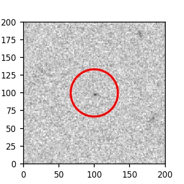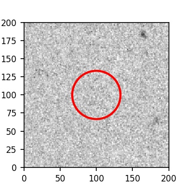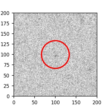 The red circle in the various panels is 1" in radius. The images are 6"x6".