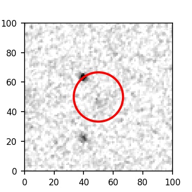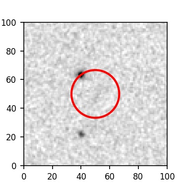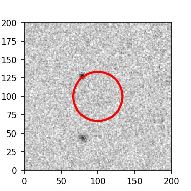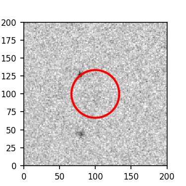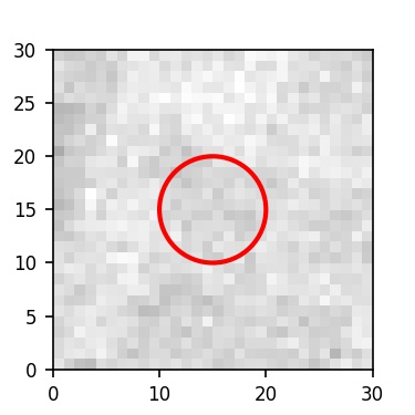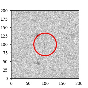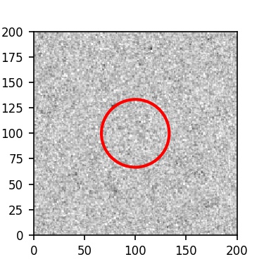 The red circle in the various panels is 1" in radius. The images are 6"x6".