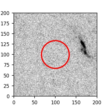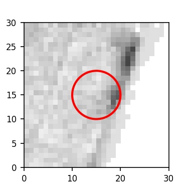 The red circle in the various panels is 1" in radius. The images are 6"x6".