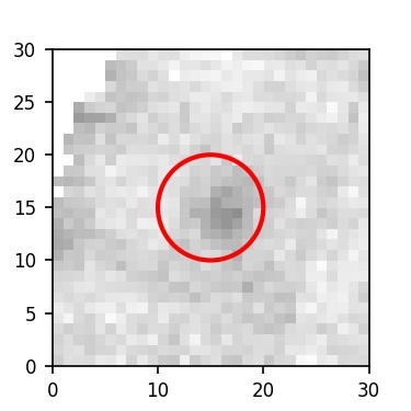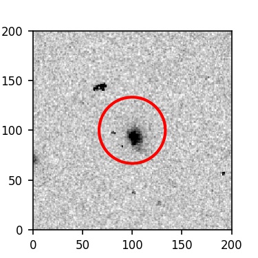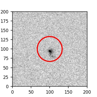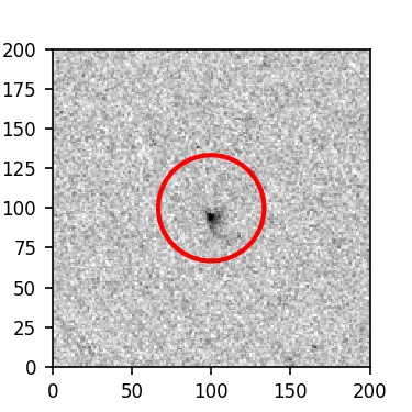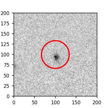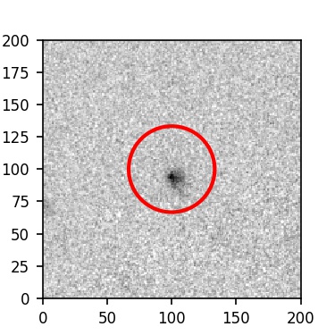 The red circle in the various panels is 1" in radius. The images are 6"x6".