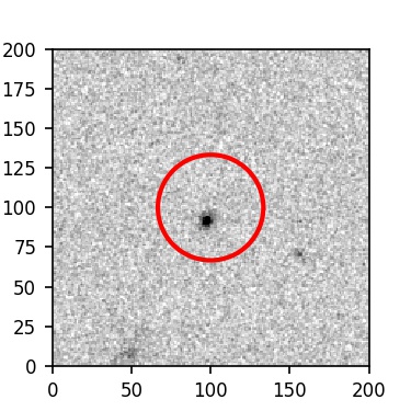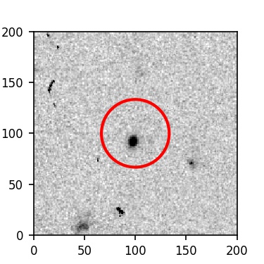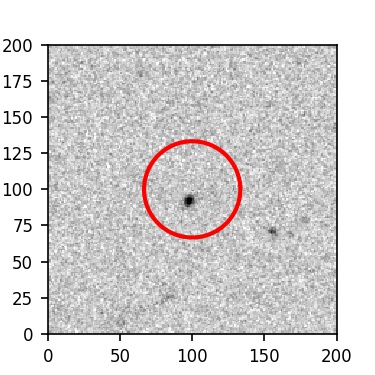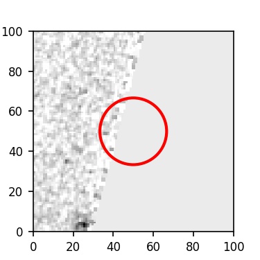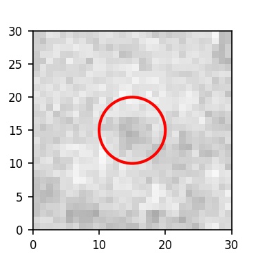 The red circle in the various panels is 1" in radius. The images are 6"x6".