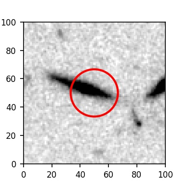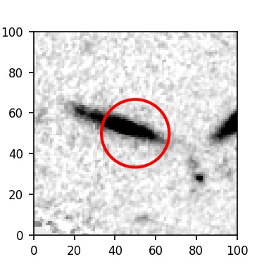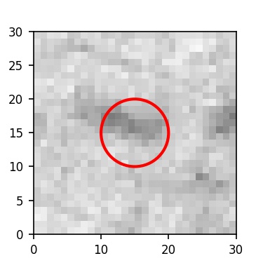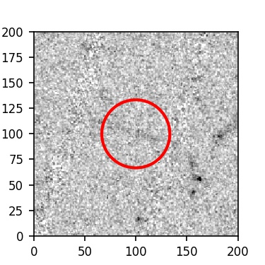 The red circle in the various panels is 1" in radius. The images are 6"x6".