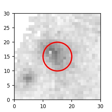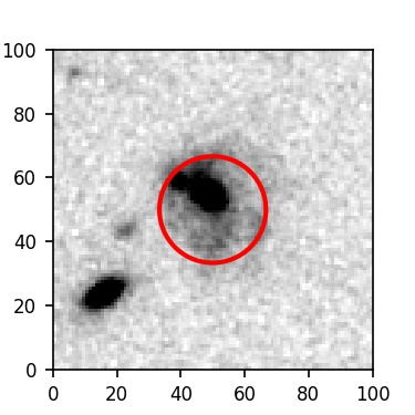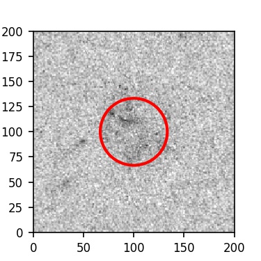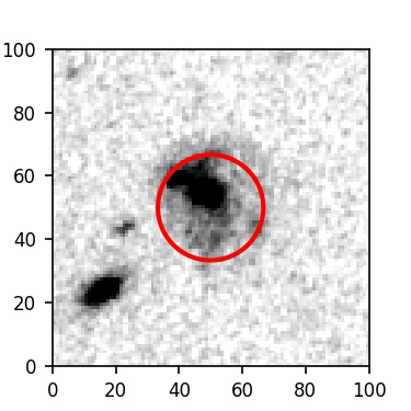 The red circle in the various panels is 1" in radius. The images are 6"x6".