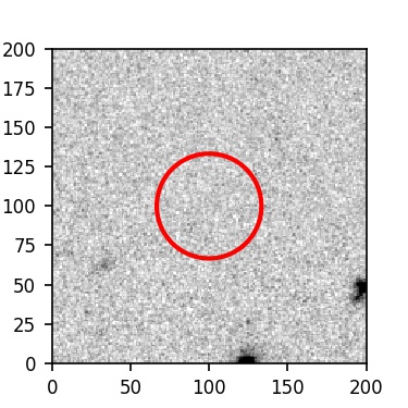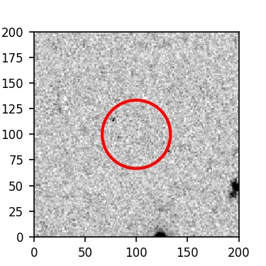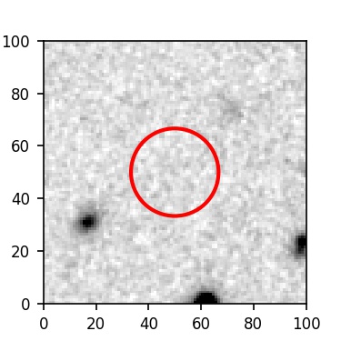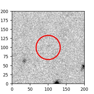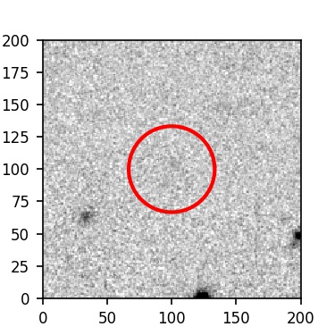 The red circle in the various panels is 1" in radius. The images are 6"x6".