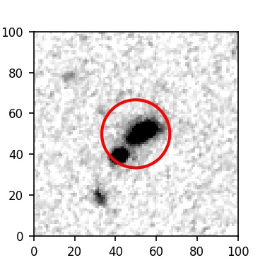The red circle in the various panels is 1" in radius. The images are 6"x6".