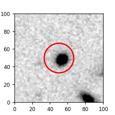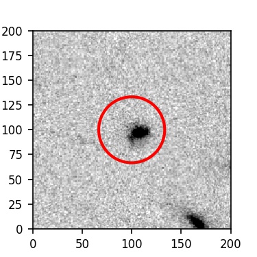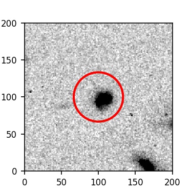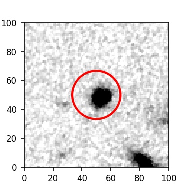 The red circle in the various panels is 1" in radius. The images are 6"x6".