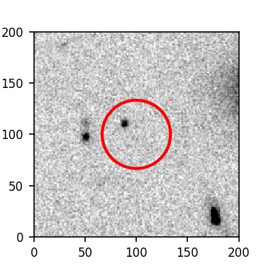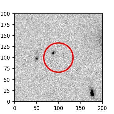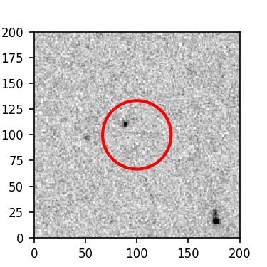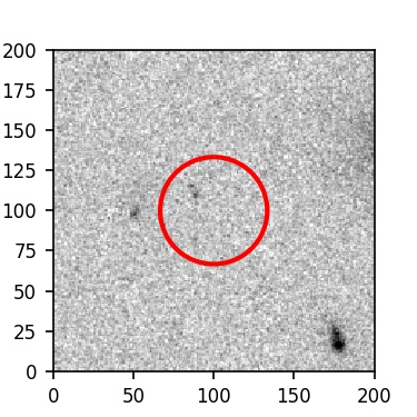 The red circle in the various panels is 1" in radius. The images are 6"x6".