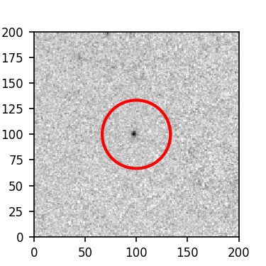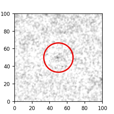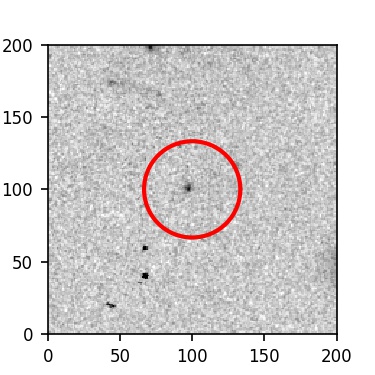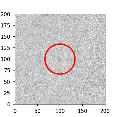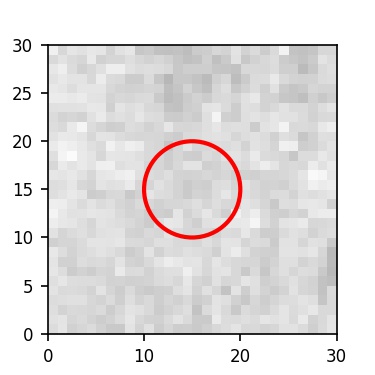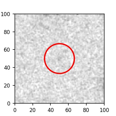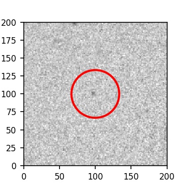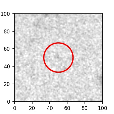 The red circle in the various panels is 1" in radius. The images are 6"x6".