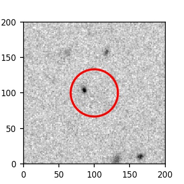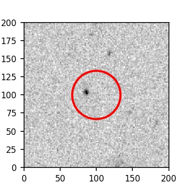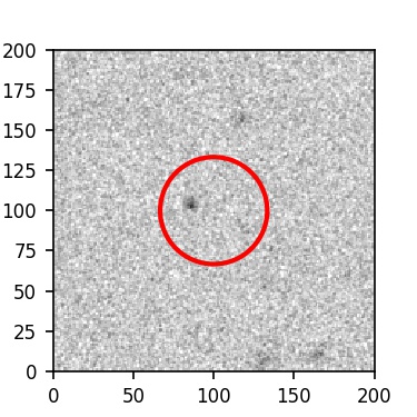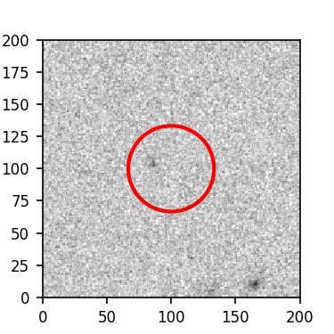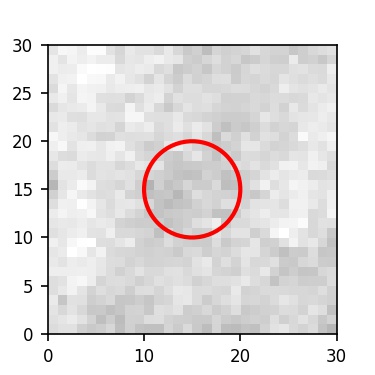 The red circle in the various panels is 1" in radius. The images are 6"x6".