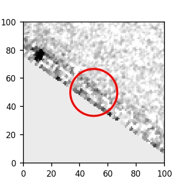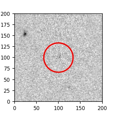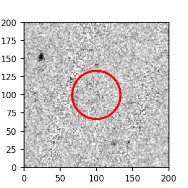 The red circle in the various panels is 1" in radius. The images are 6"x6".