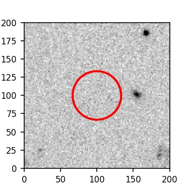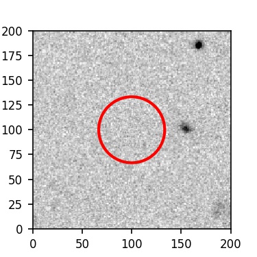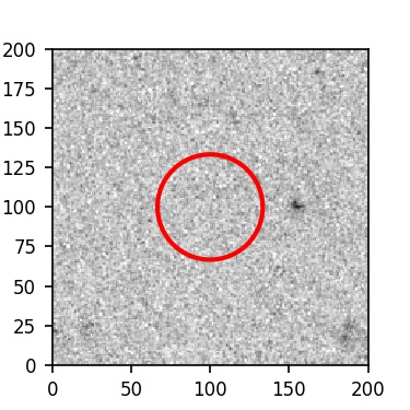 The red circle in the various panels is 1" in radius. The images are 6"x6".