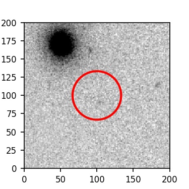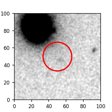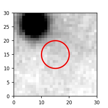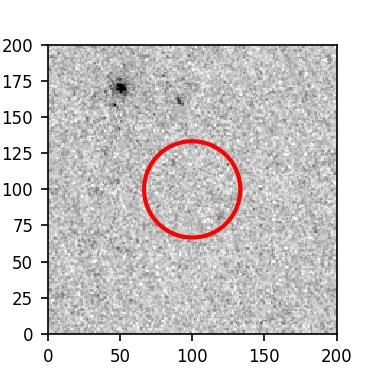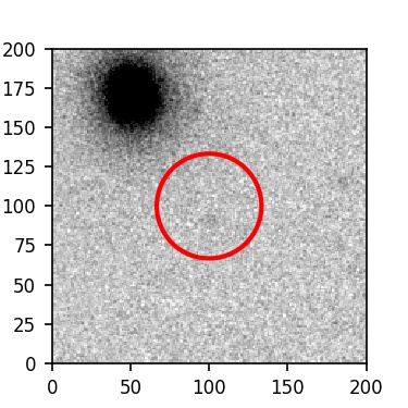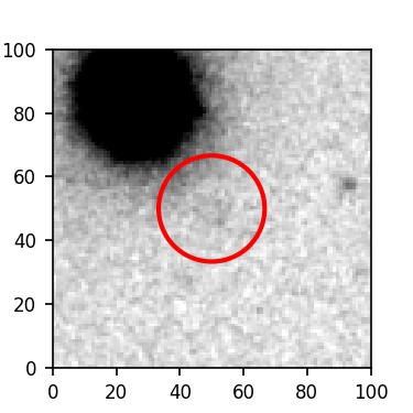 The red circle in the various panels is 1" in radius. The images are 6"x6".