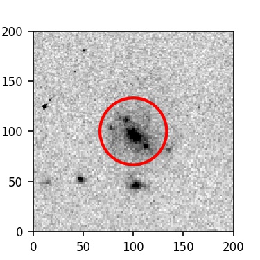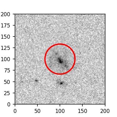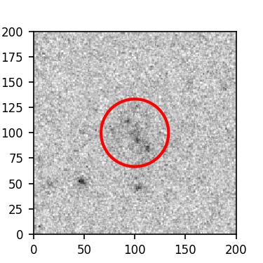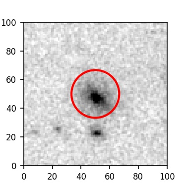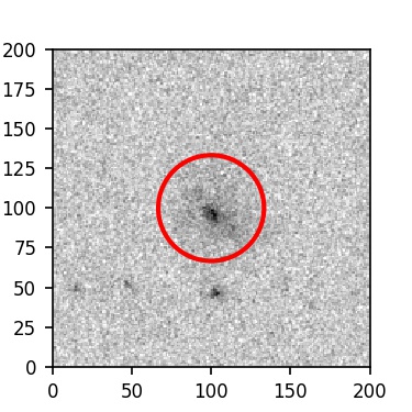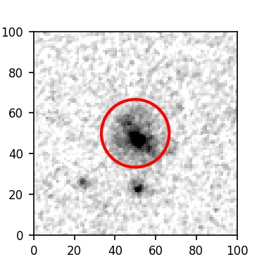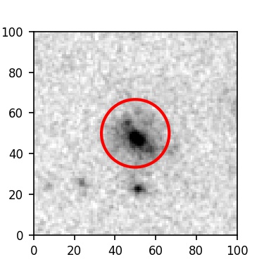 The red circle in the various panels is 1" in radius. The images are 6"x6".