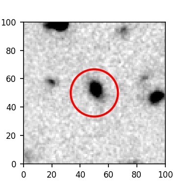 The red circle in the various panels is 1" in radius. The images are 6"x6".