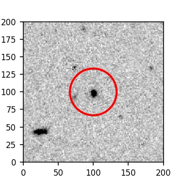 The red circle in the various panels is 1" in radius. The images are 6"x6".