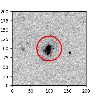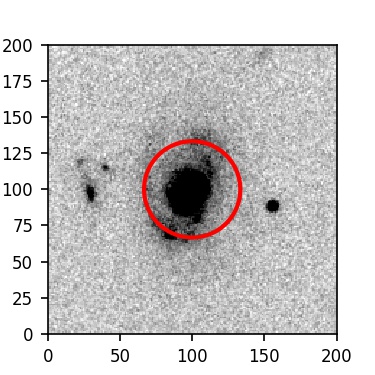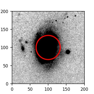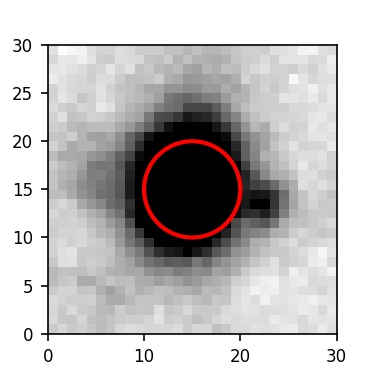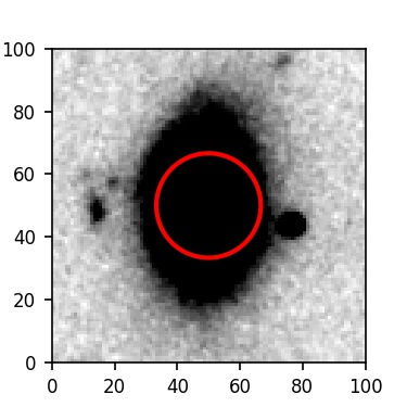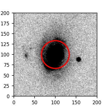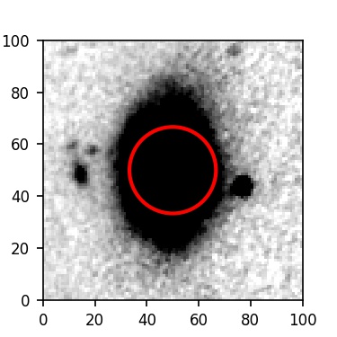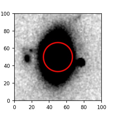 The red circle in the various panels is 1" in radius. The images are 6"x6".