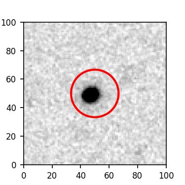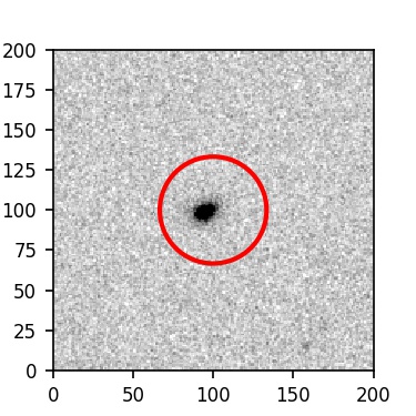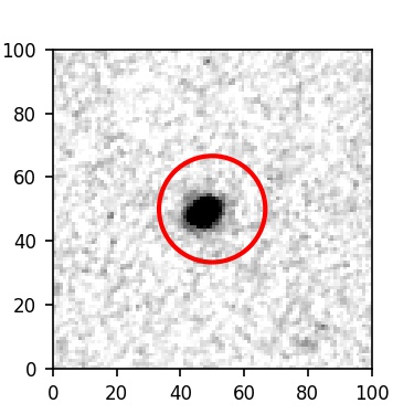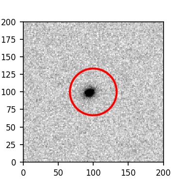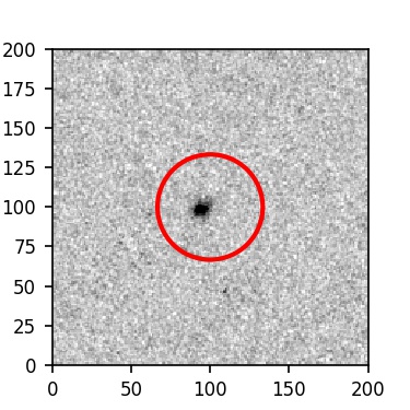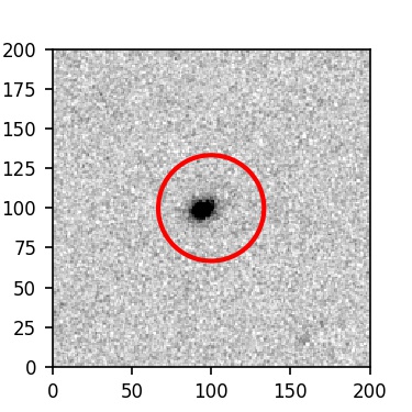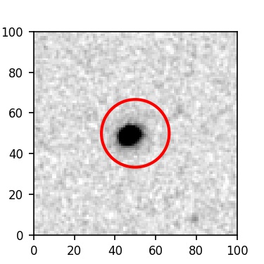 The red circle in the various panels is 1" in radius. The images are 6"x6".