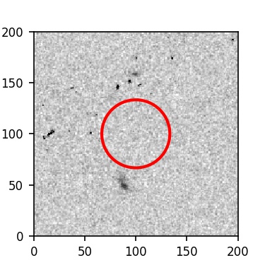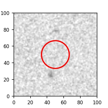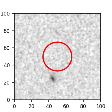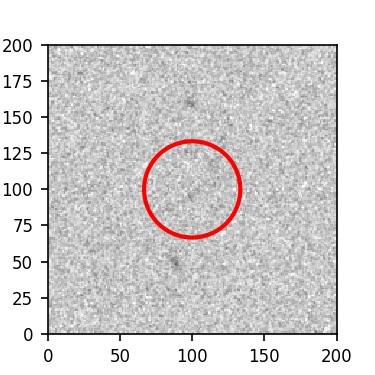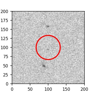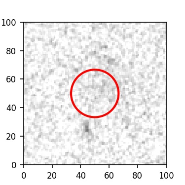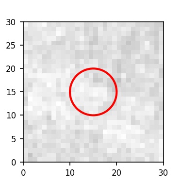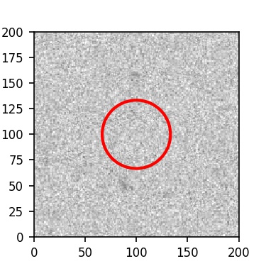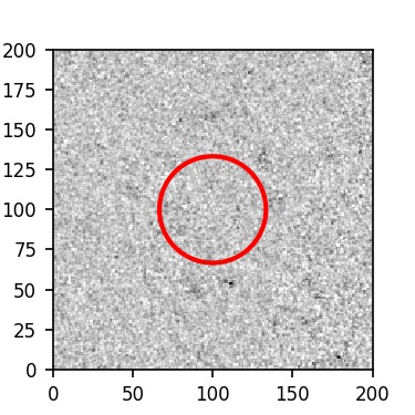 The red circle in the various panels is 1" in radius. The images are 6"x6".