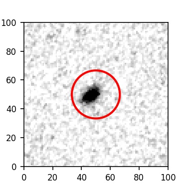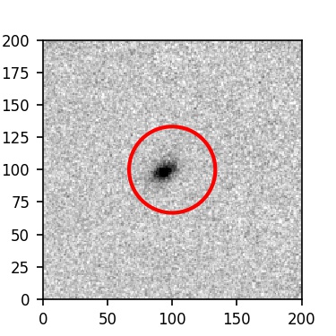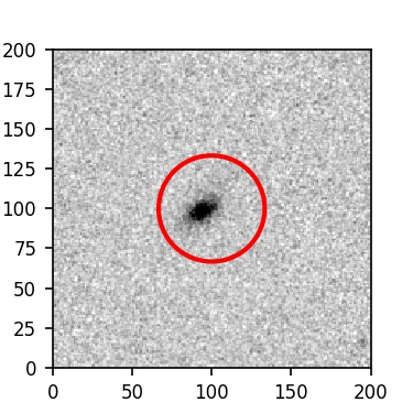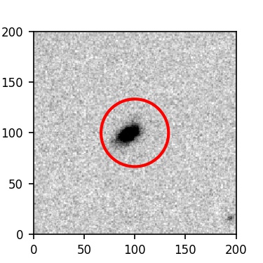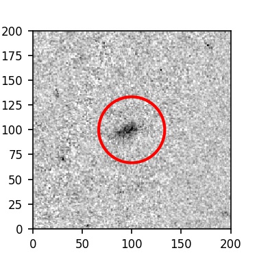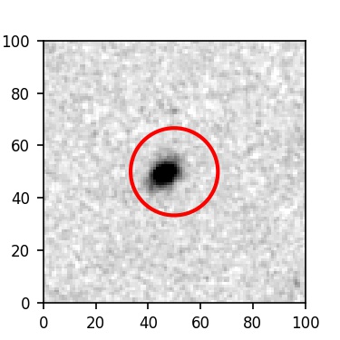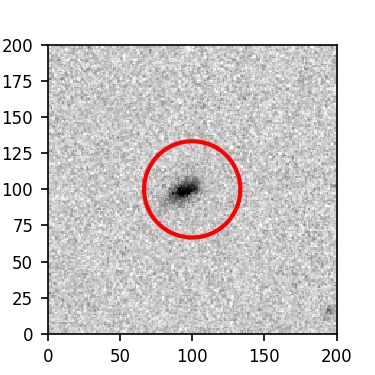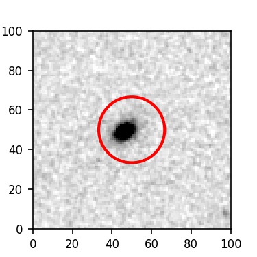 The red circle in the various panels is 1" in radius. The images are 6"x6".
