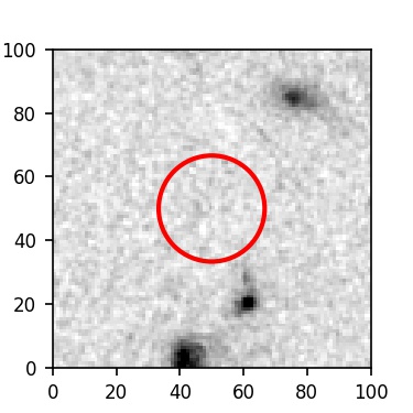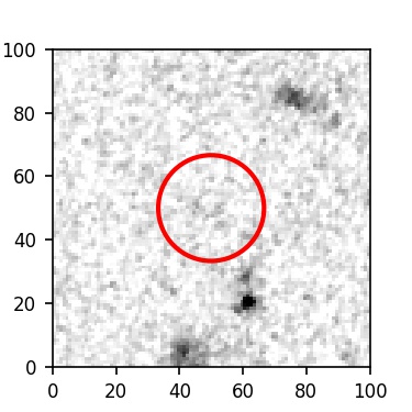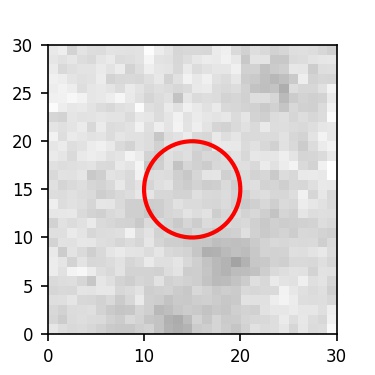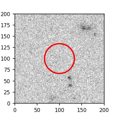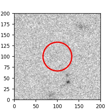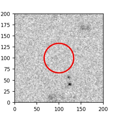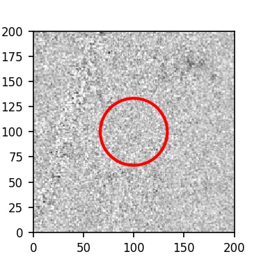 The red circle in the various panels is 1" in radius. The images are 6"x6".