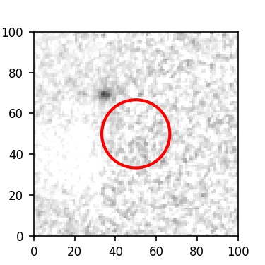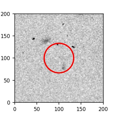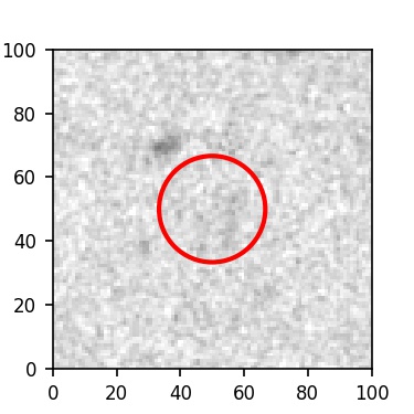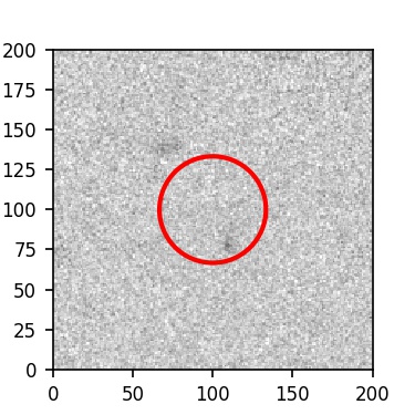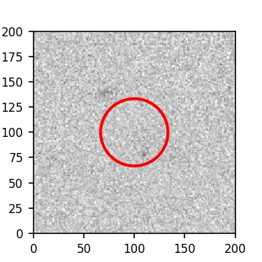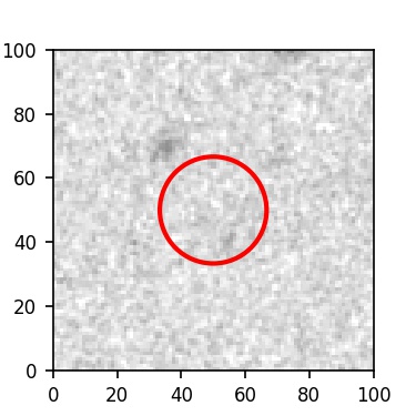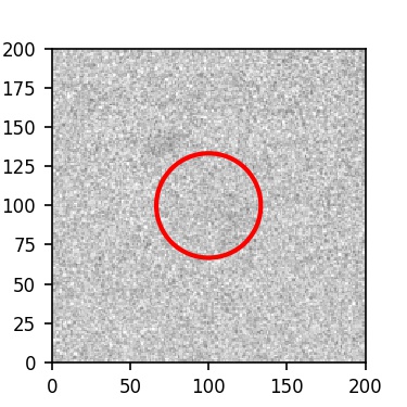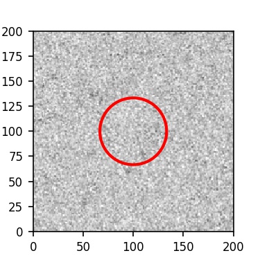 The red circle in the various panels is 1" in radius. The images are 6"x6".