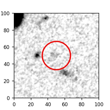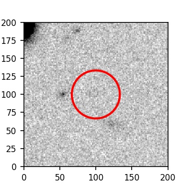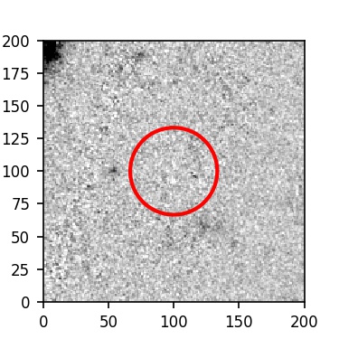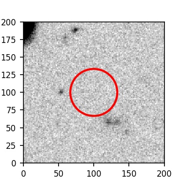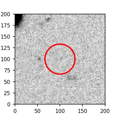 The red circle in the various panels is 1" in radius. The images are 6"x6".