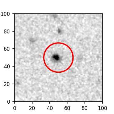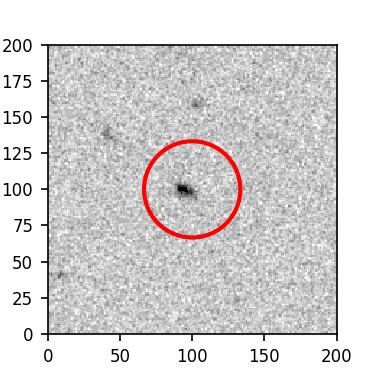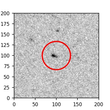 The red circle in the various panels is 1" in radius. The images are 6"x6".