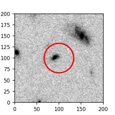 The red circle in the various panels is 1" in radius. The images are 6"x6".