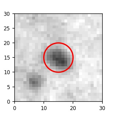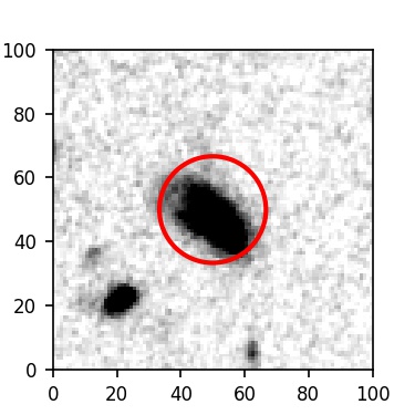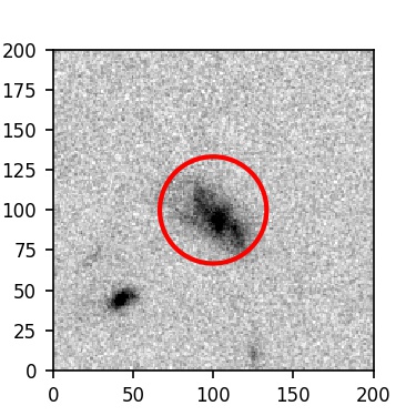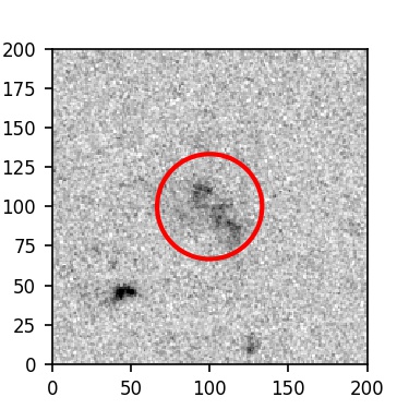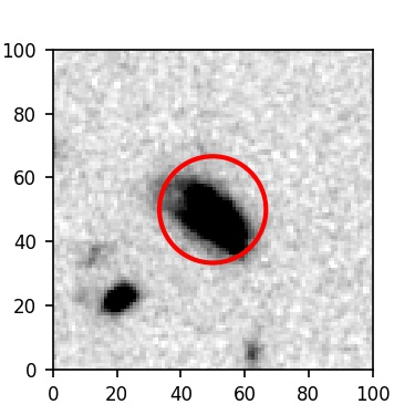 The red circle in the various panels is 1" in radius. The images are 6"x6".