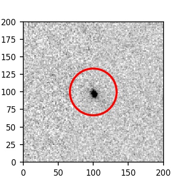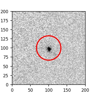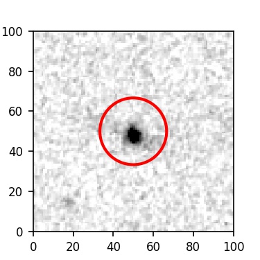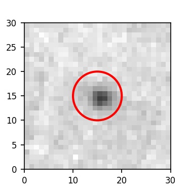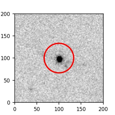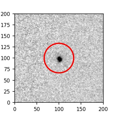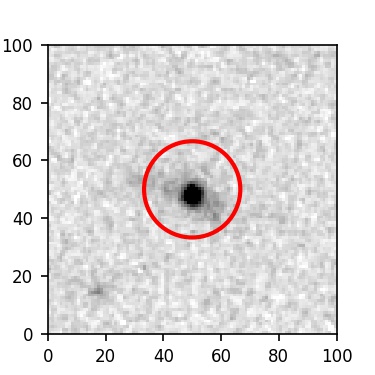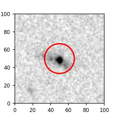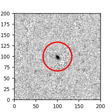 The red circle in the various panels is 1" in radius. The images are 6"x6".