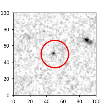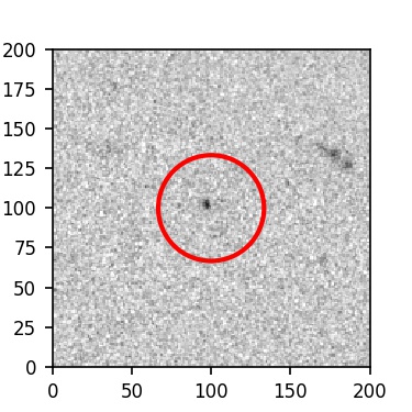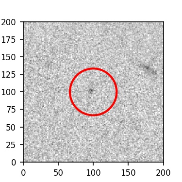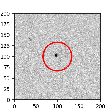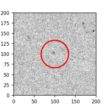The red circle in the various panels is 1" in radius. The images are 6"x6".
