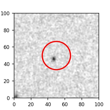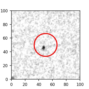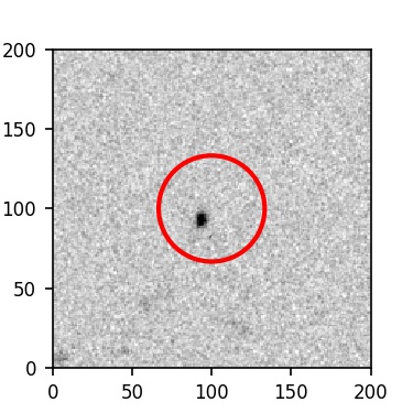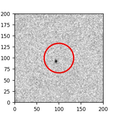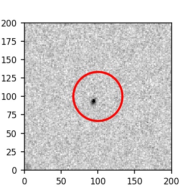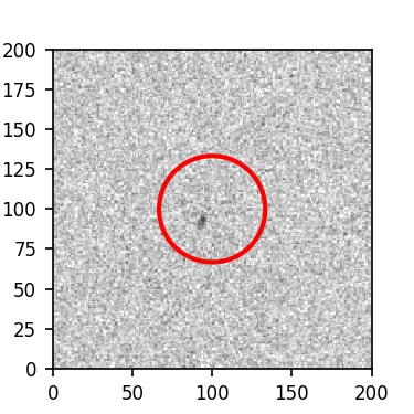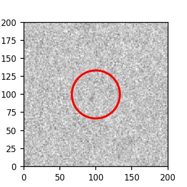 The red circle in the various panels is 1" in radius. The images are 6"x6".