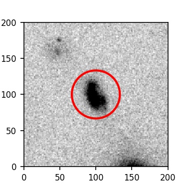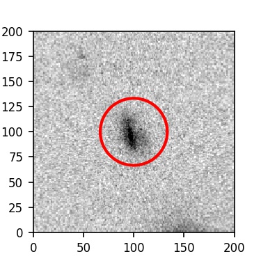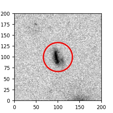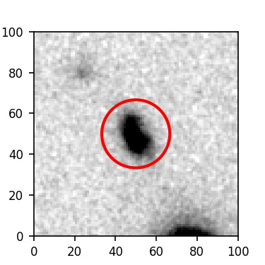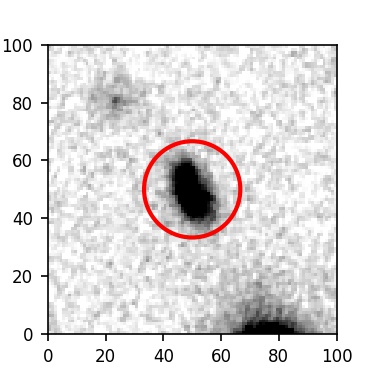 The red circle in the various panels is 1" in radius. The images are 6"x6".