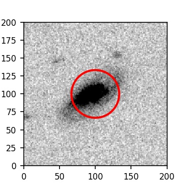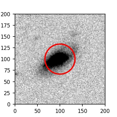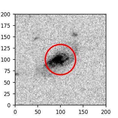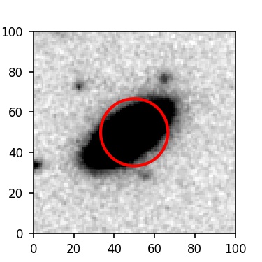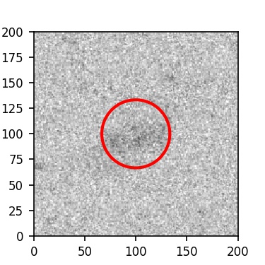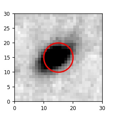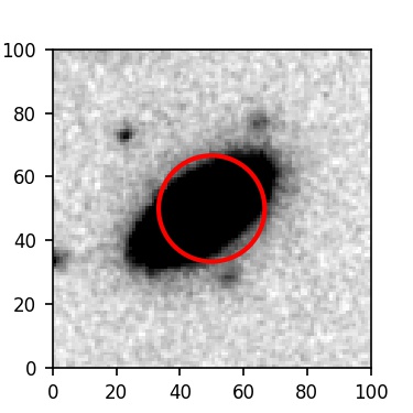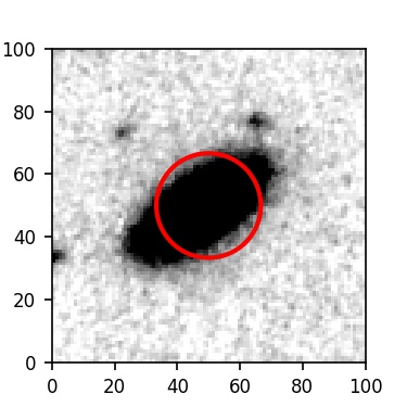 The red circle in the various panels is 1" in radius. The images are 6"x6".
