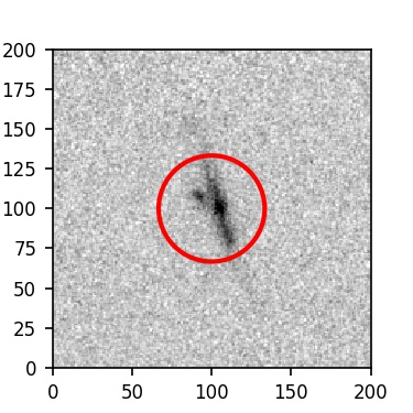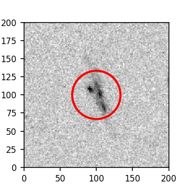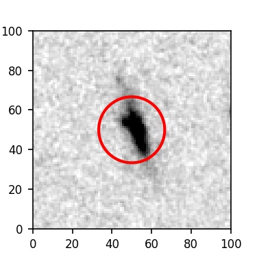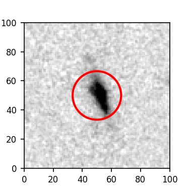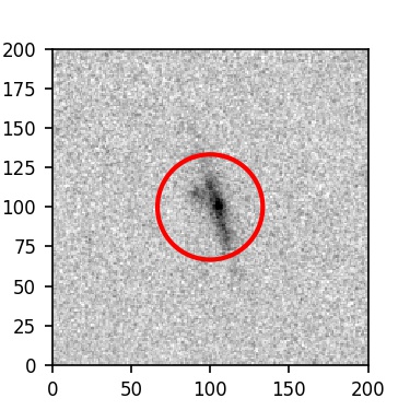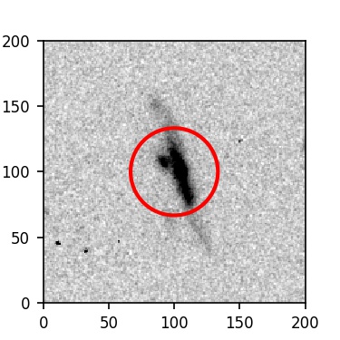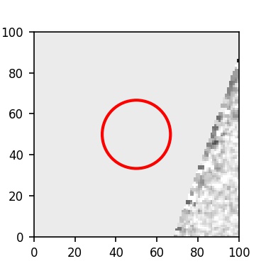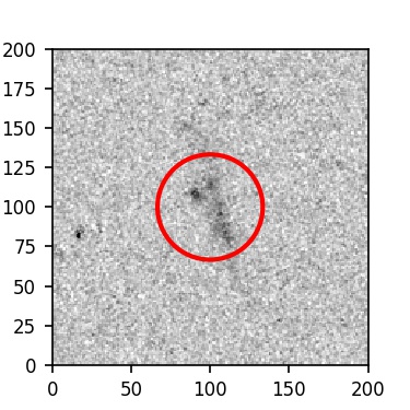 The red circle in the various panels is 1" in radius. The images are 6"x6".