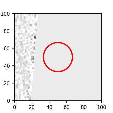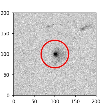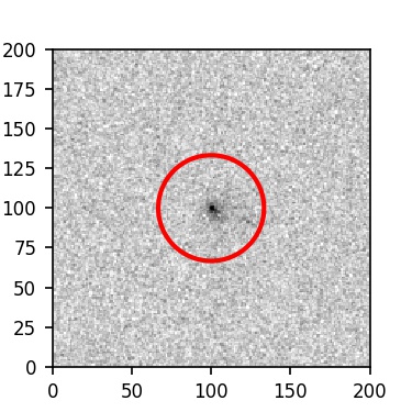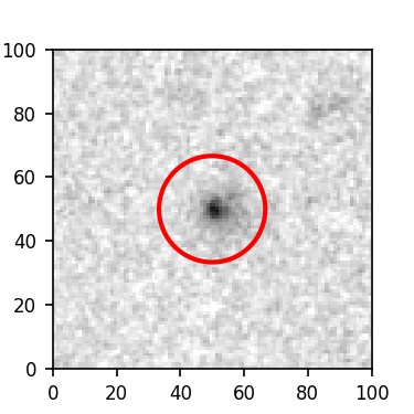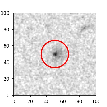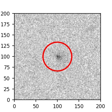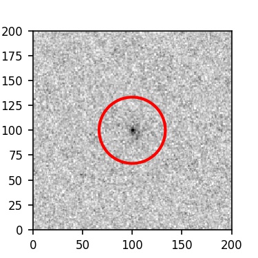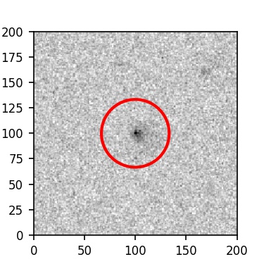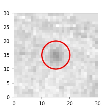 The red circle in the various panels is 1" in radius. The images are 6"x6".