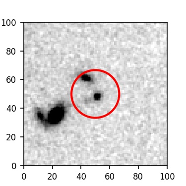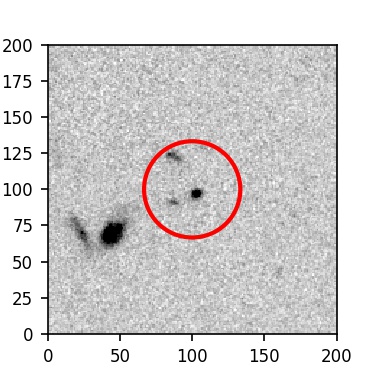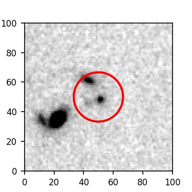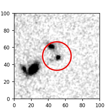 The red circle in the various panels is 1" in radius. The images are 6"x6".