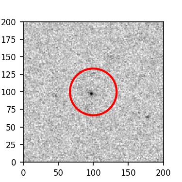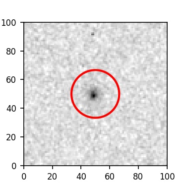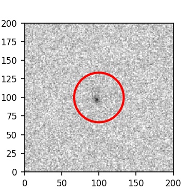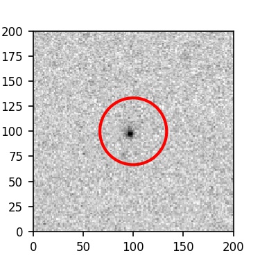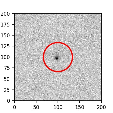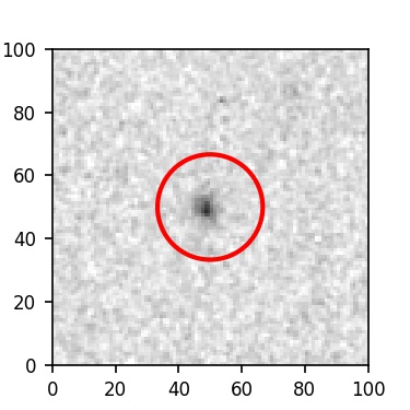 The red circle in the various panels is 1" in radius. The images are 6"x6".