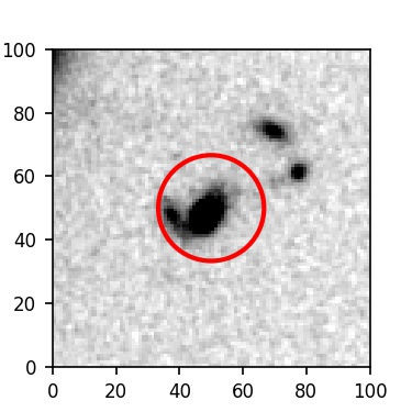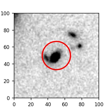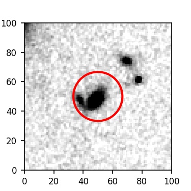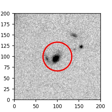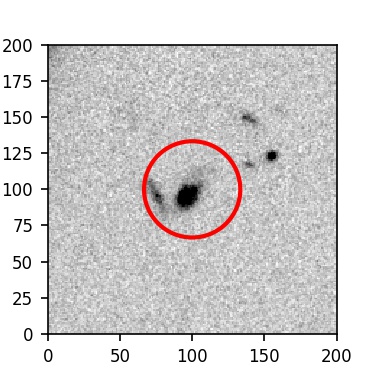 The red circle in the various panels is 1" in radius. The images are 6"x6".
