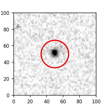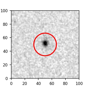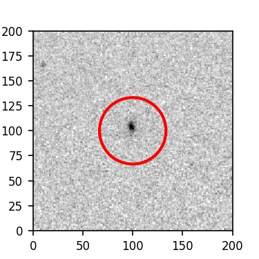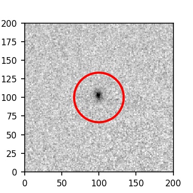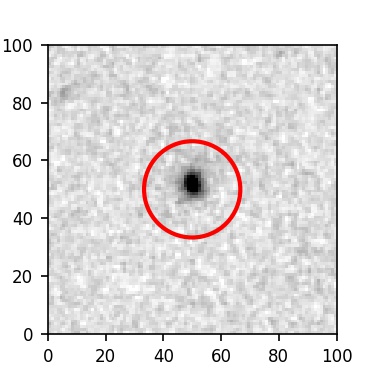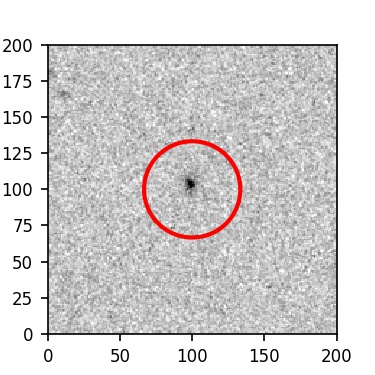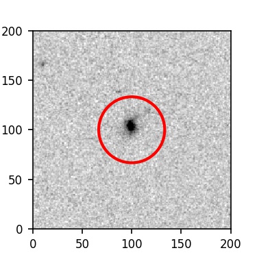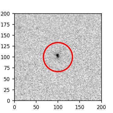 The red circle in the various panels is 1" in radius. The images are 6"x6".