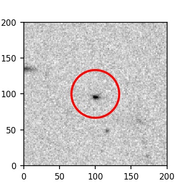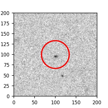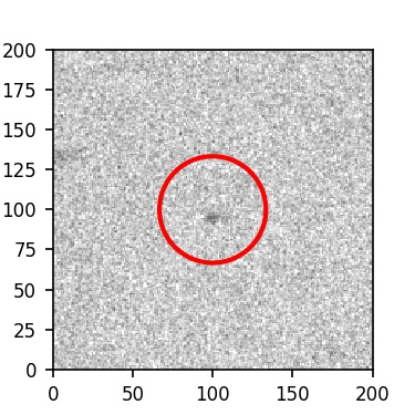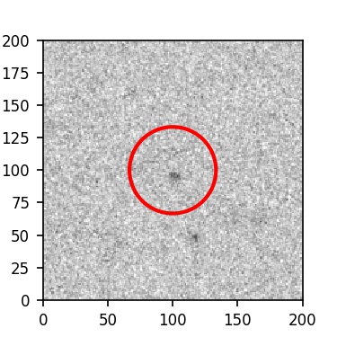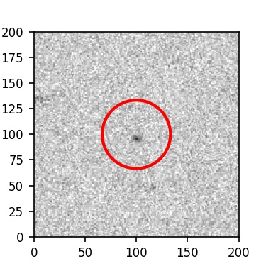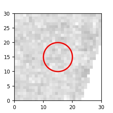The red circle in the various panels is 1" in radius. The images are 6"x6".