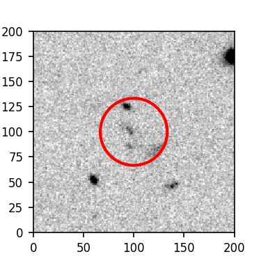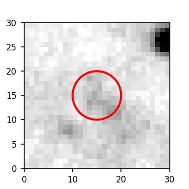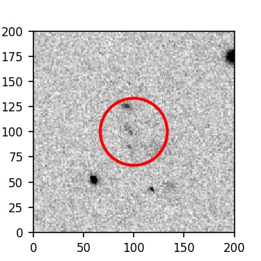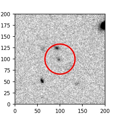 The red circle in the various panels is 1" in radius. The images are 6"x6".