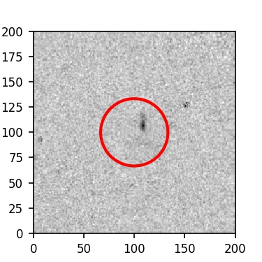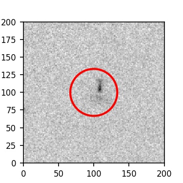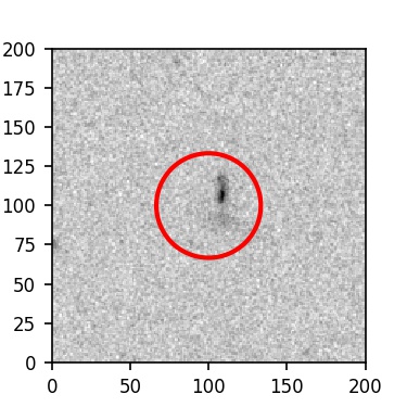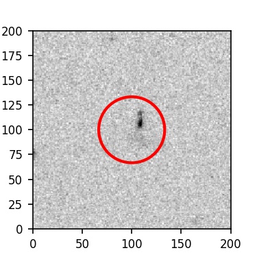 The red circle in the various panels is 1" in radius. The images are 6"x6".