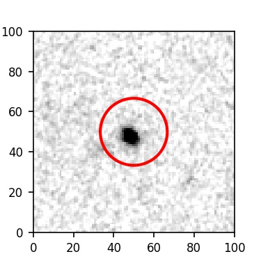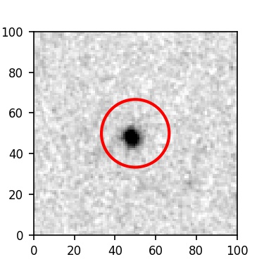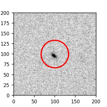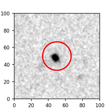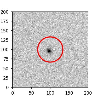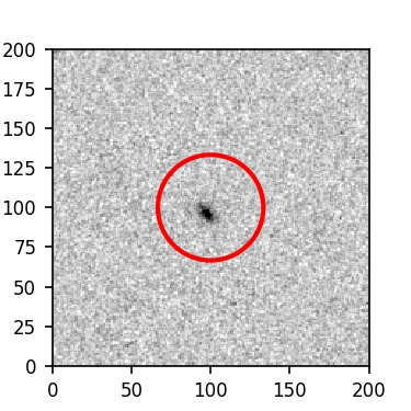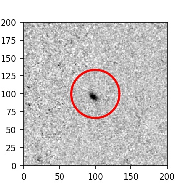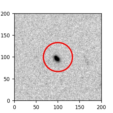 The red circle in the various panels is 1" in radius. The images are 6"x6".