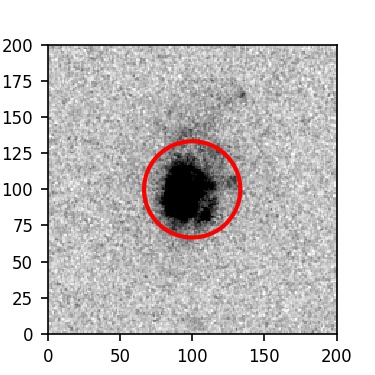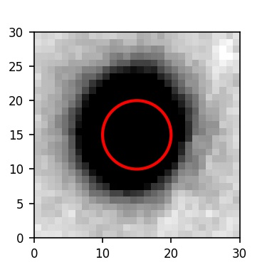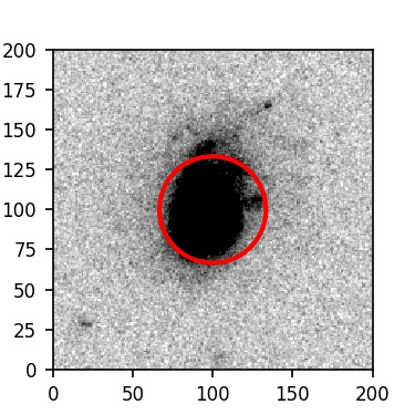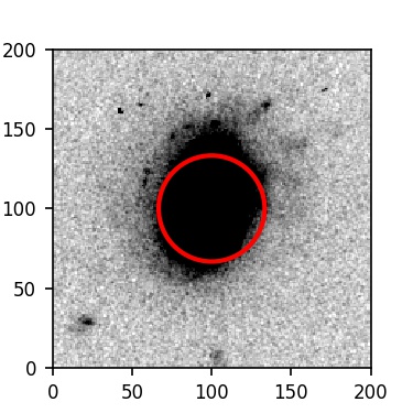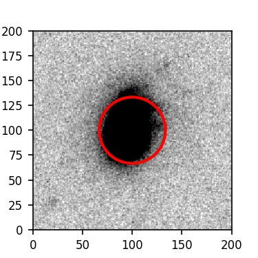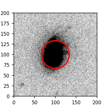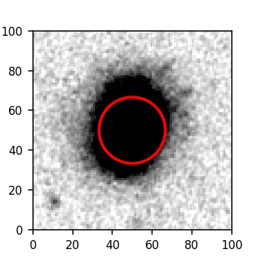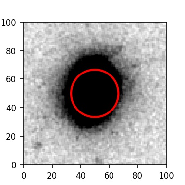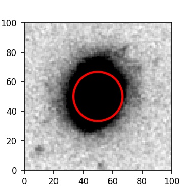 The red circle in the various panels is 1" in radius. The images are 6"x6".