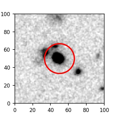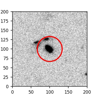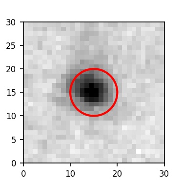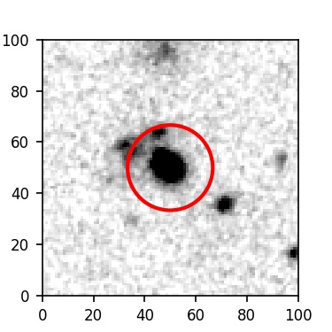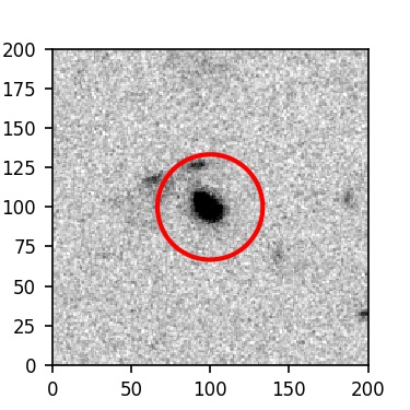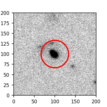 The red circle in the various panels is 1" in radius. The images are 6"x6".