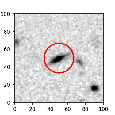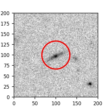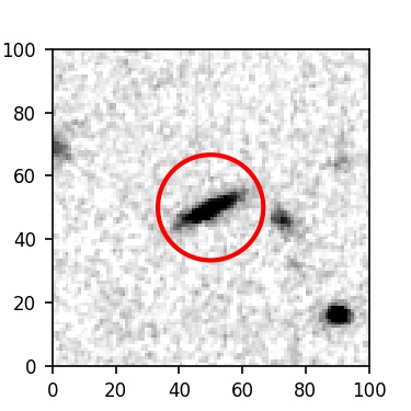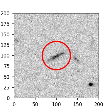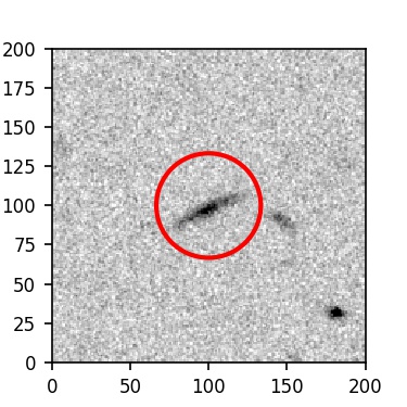 The red circle in the various panels is 1" in radius. The images are 6"x6".