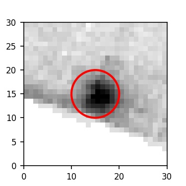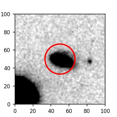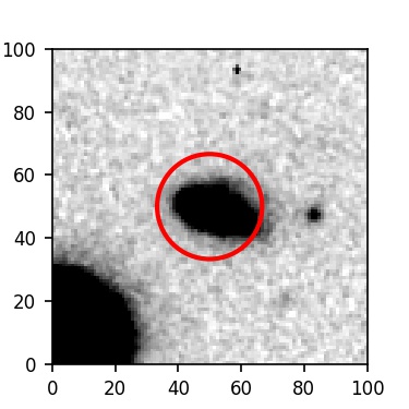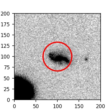 The red circle in the various panels is 1" in radius. The images are 6"x6".